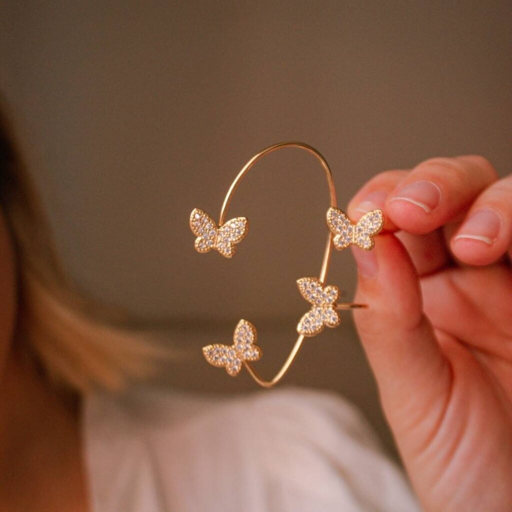 Brinco Feminino Ear Cuff de Borboleta Banhado A Ouro 18k