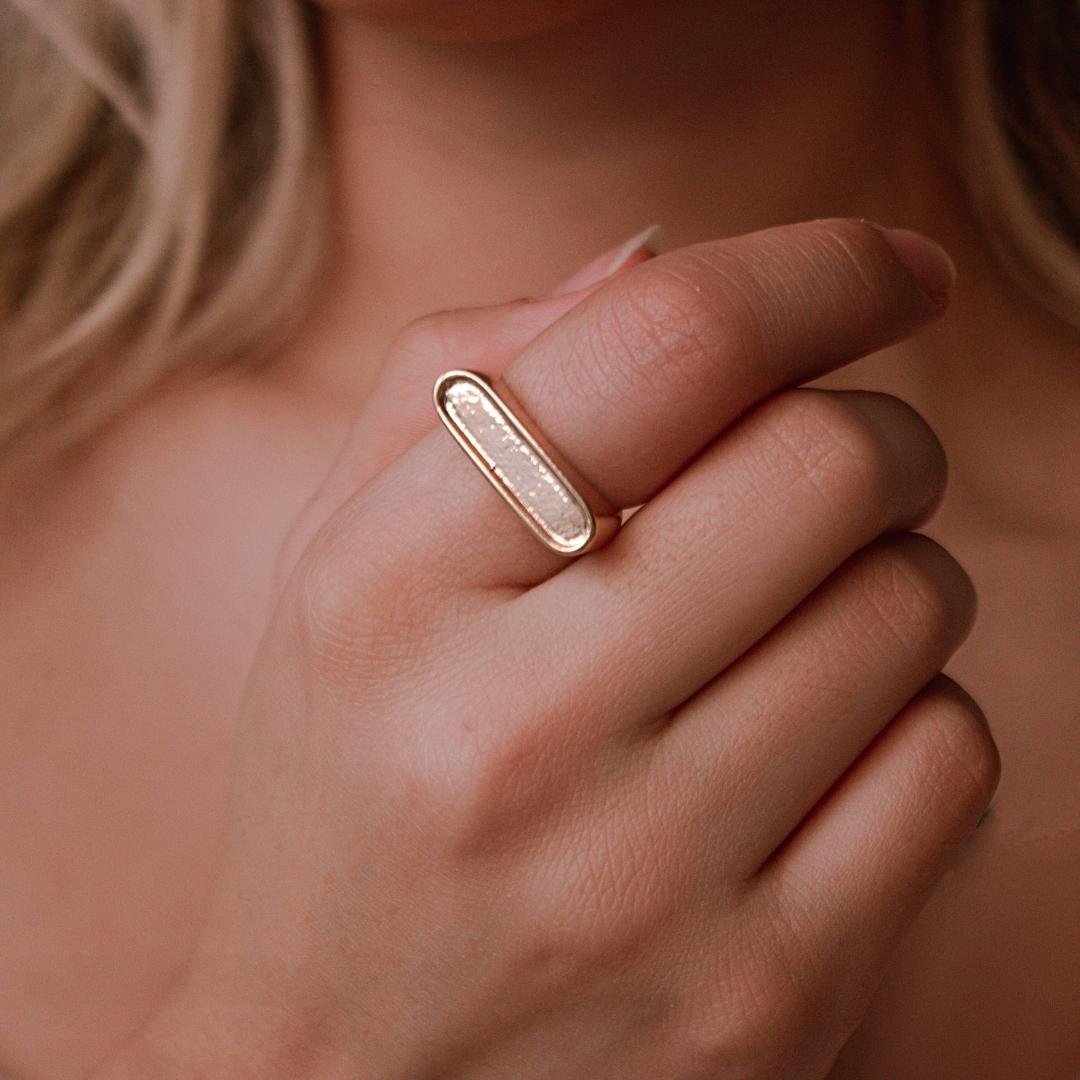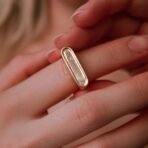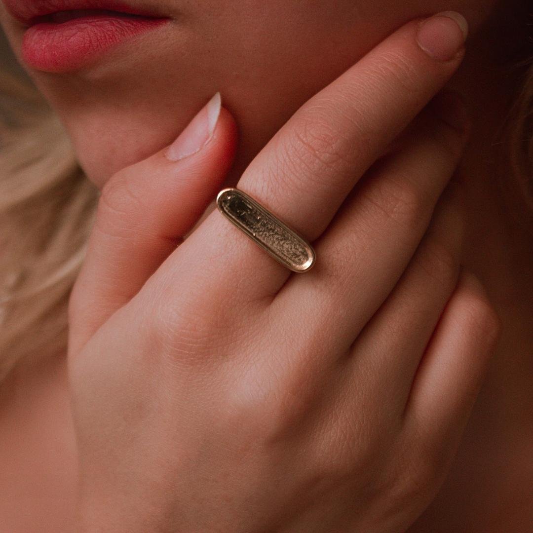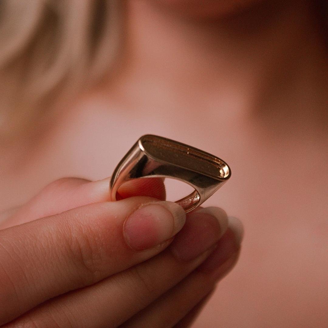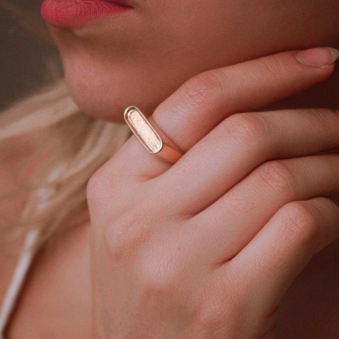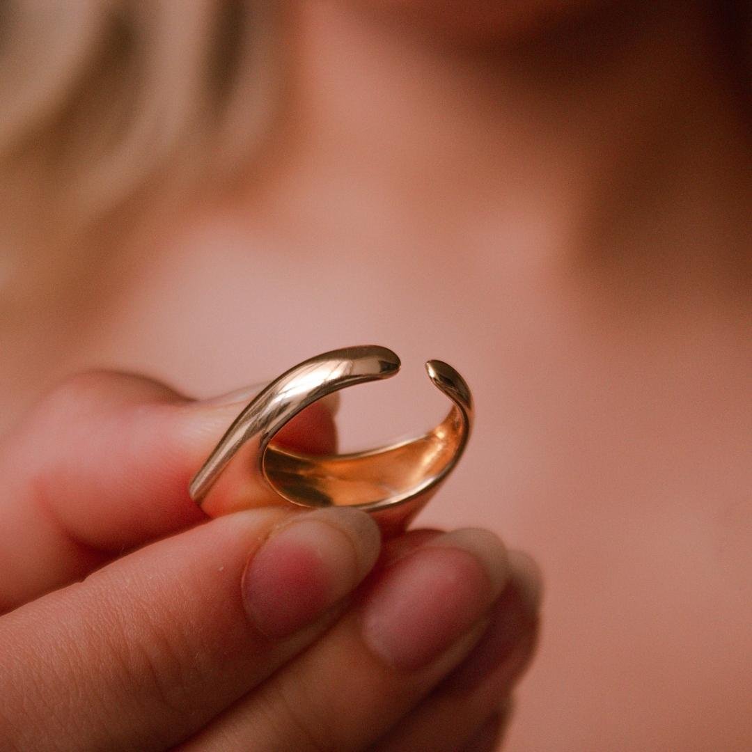 Anel modelo ajustável, metal liso, formato retângulo arredondado, semi joia banhado a ouro 18k.
