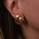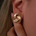 Modelo de brinco com design diferenciado, em formato de círculos entrelaçados com detalhes no metal, super elegante. Semi joia banhada a ouro 18k.