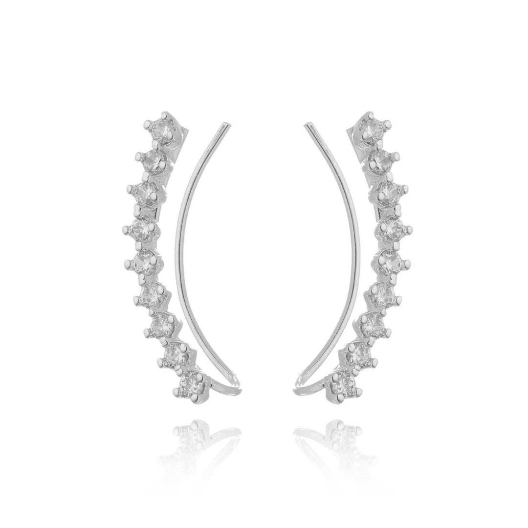 Brinco modelo ear cuff, todo em zircônia e com pino diferenciado que se encaixa perfeitamente na orelha. Semi jóia banhada a prata.