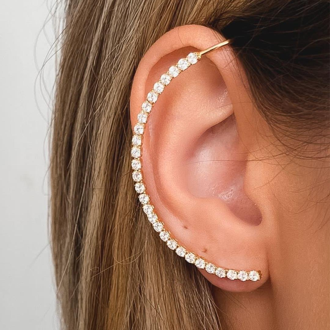Brinco modelo ear cuff, todo em zircônia cristal. Semi jóia banhada a ouro 18k.