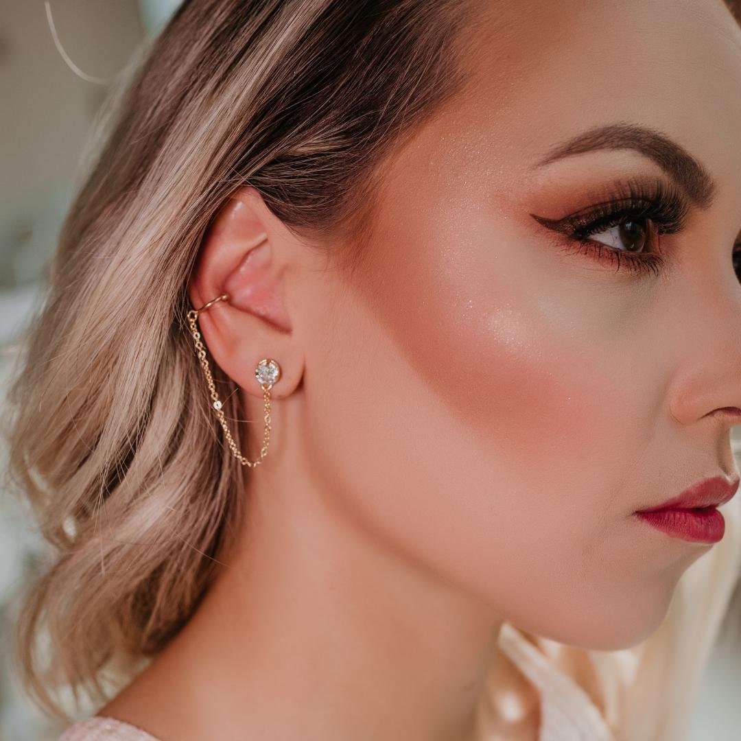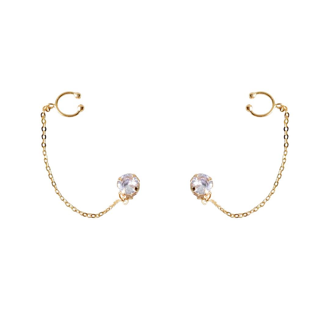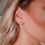Brinco modelo ear line ponto de luz, brinco para primeiro furo junto com piercing fake, semi jóia banhado a ouro 18k.