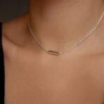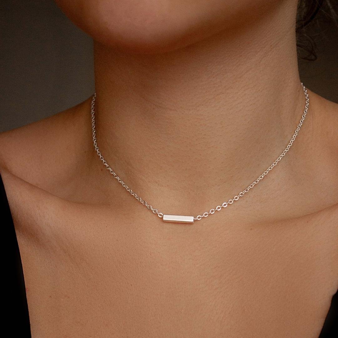 Colar modelo em corrente cadeado com pingente liso, semi joia banhado a prata.