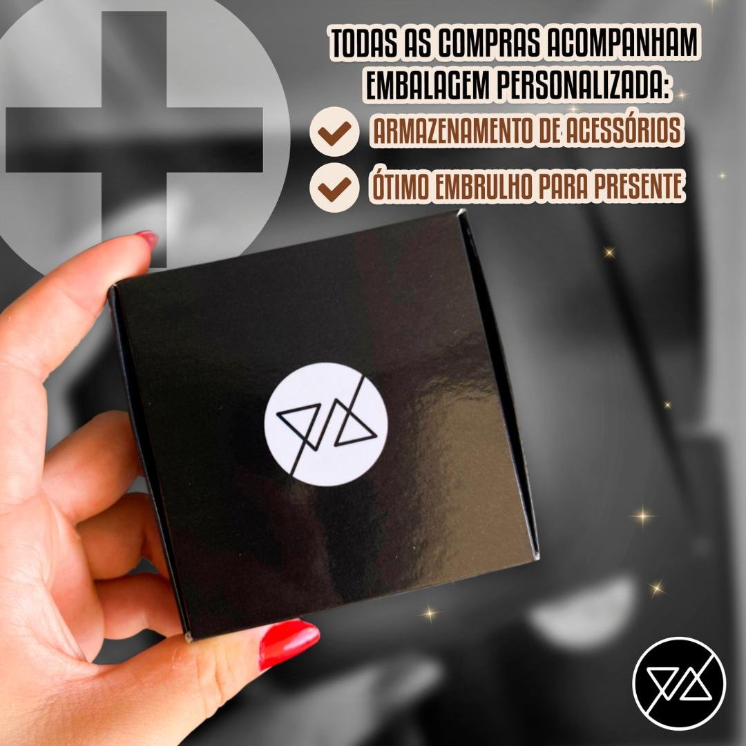 Todos nossos produtos vão com embalagem exclusiva e personalizada, perfeita para presentear ou guardar seus acessórios.