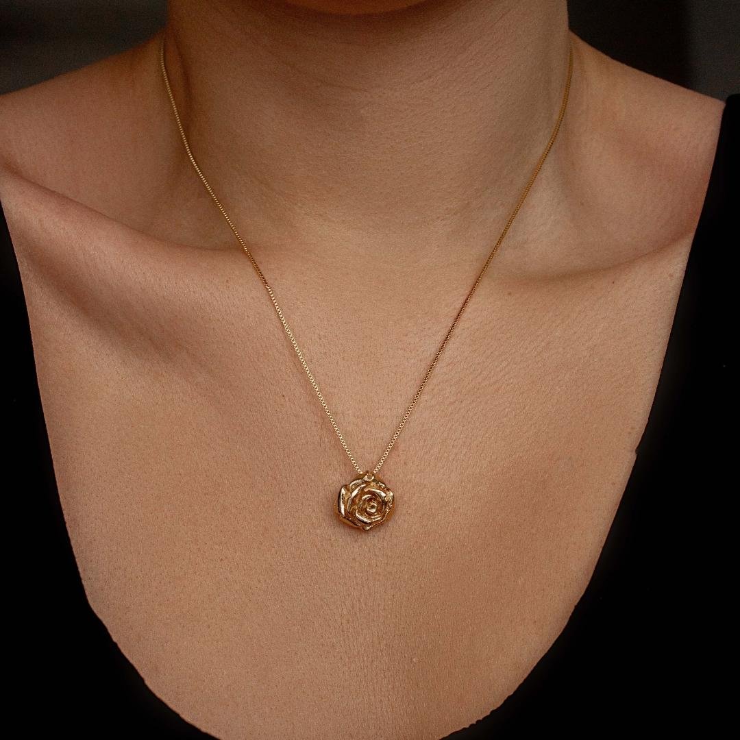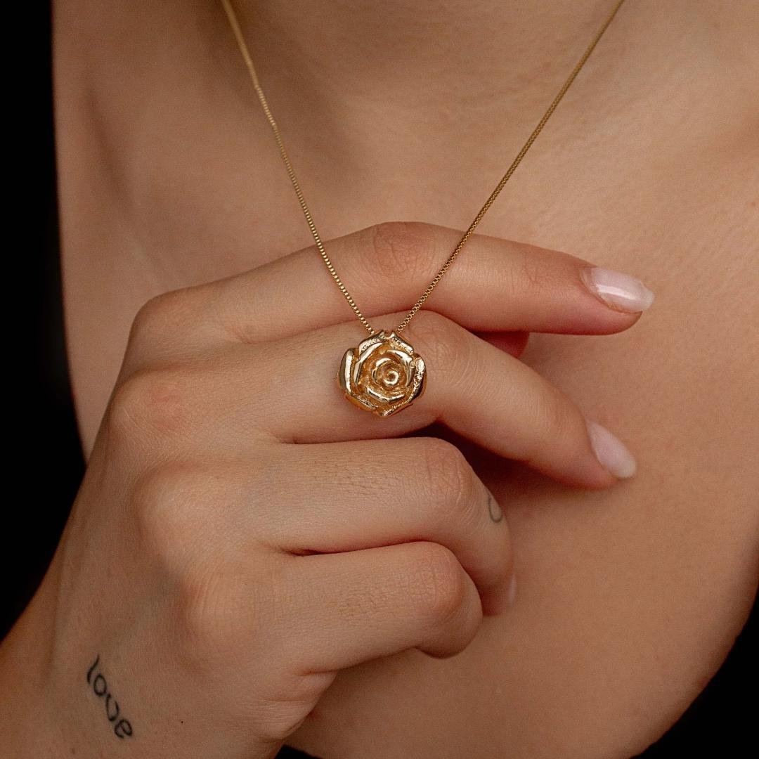 Colar em corrente veneziana com pingente em formato de flor, semi joia banhado a ouro 18k.